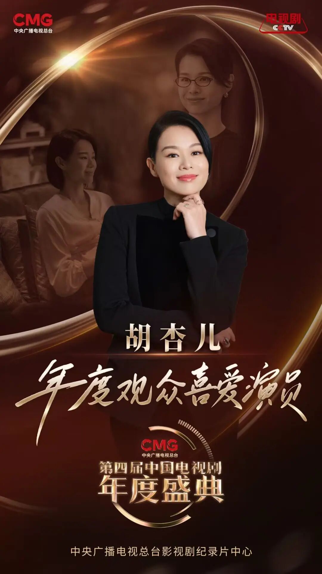 年度观众喜爱演员 颁 奖 词 观众的掌声与喜爱,是演员深耕角色的底气,更是他们一路前行的动力,用角色传递温度,用作品诠释初心。 《蛮好的人生》主演胡杏儿(饰 邱丽苏)领奖