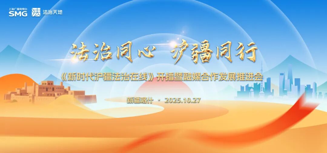 近日,“法治同心 沪疆同行”《新时代沪疆法治在线》开播暨融媒合作发展推进会在新疆喀什举行。作为2025年上海市“文化浸润”重点项目,由东方明珠旗下文广互动法治天地频道携手喀什地区融媒体中心共同打造的特色法治栏目《新时代沪疆法治在线》将于11月1日正式开播,标志着沪喀两地在法治宣传与融媒协作方面迈出坚实一步。